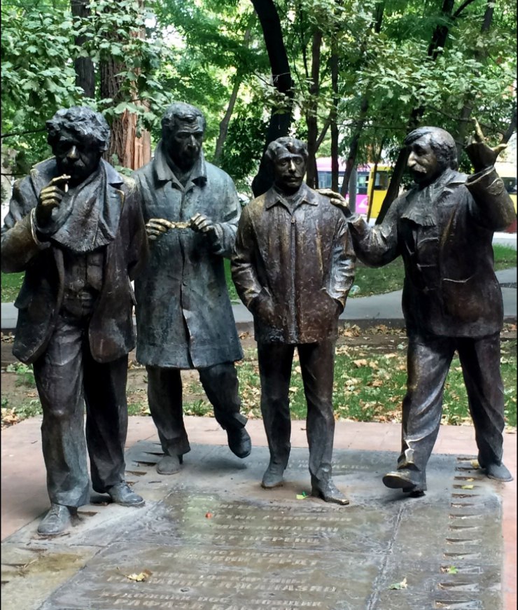 Наткнулась на эту скульптурную группу совершенно случайно, по пути с Каскада. И не смогла пройти мимо! Четыре мужчины - четыре ереванских таксиста из фильма Эдмона Кеосаяна - четыре известных армянских артиста (да-да, и гениальнейший Фрунзик Мкрчан) - стоят, как живые, среди опавших листьев. Столько в этих фигурах жизни, столько экспрессии и обаяния, что так и хочется представить себя на месте красавицы Каринэ, перед домом которой они стоят...."