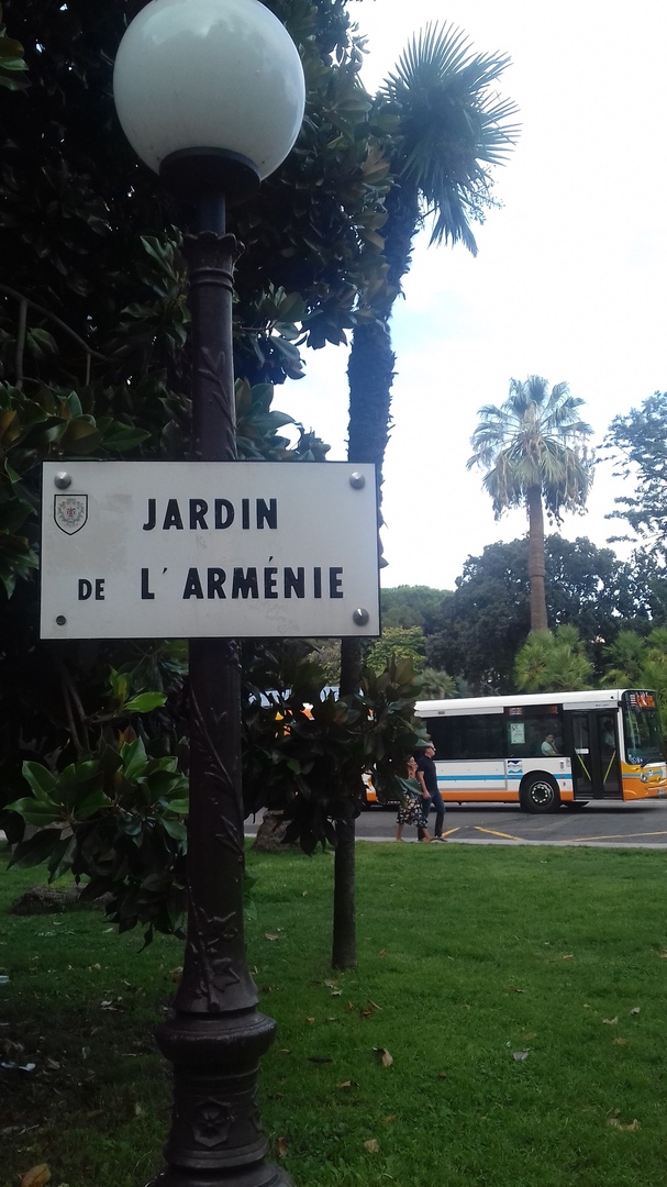 Жорж проживает в армянском районе Ниццы Ла Конк. Однако основная масса армян сконцентрирована в другом районе Ниццы – Сен-Себастьене. Там же и Армянская церковь. Оба района на возвышенности. Подниматься к ним я не рискнул в связи с тем, что пару недель назад до этого у меня здорово заболела спина. Да и чего к ним подниматься в горы, если в низине столько всего интересного и завораживающего?! В том числе и армянского. К примеру, прогуливаясь по Английской набережной рядом с Садом Альберта I, можно увидеть еще один сад – Jardin de l` Arménie. Уютный зеленый «Сад Армении» раскинулся в двух шагах от Английской набережной и притягивает к себе влюбленные пары. Здесь же установлен хачкар и монумент армянским партизанским отрядам, боровшимся за свободу Франции. Среди их членов известно имя героя Франции Мисака Манушяна.