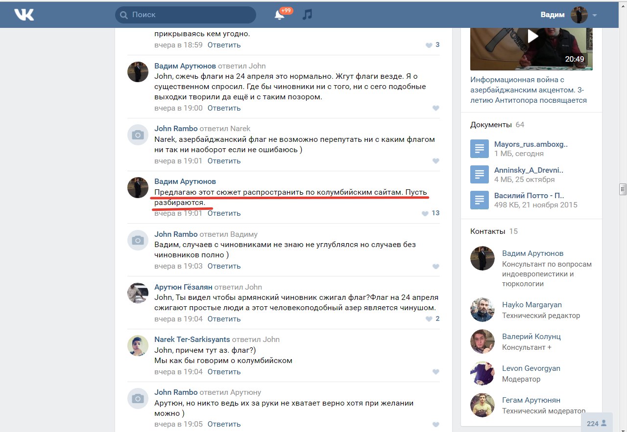 Сутки минули с тех пор, как возникла мысль в Ростове-на-Дону. И вот уже сегодня мысль докатилась до Боготы: Колумбия разместила у себя на сайте детские шалости азербайджанских чинушек.